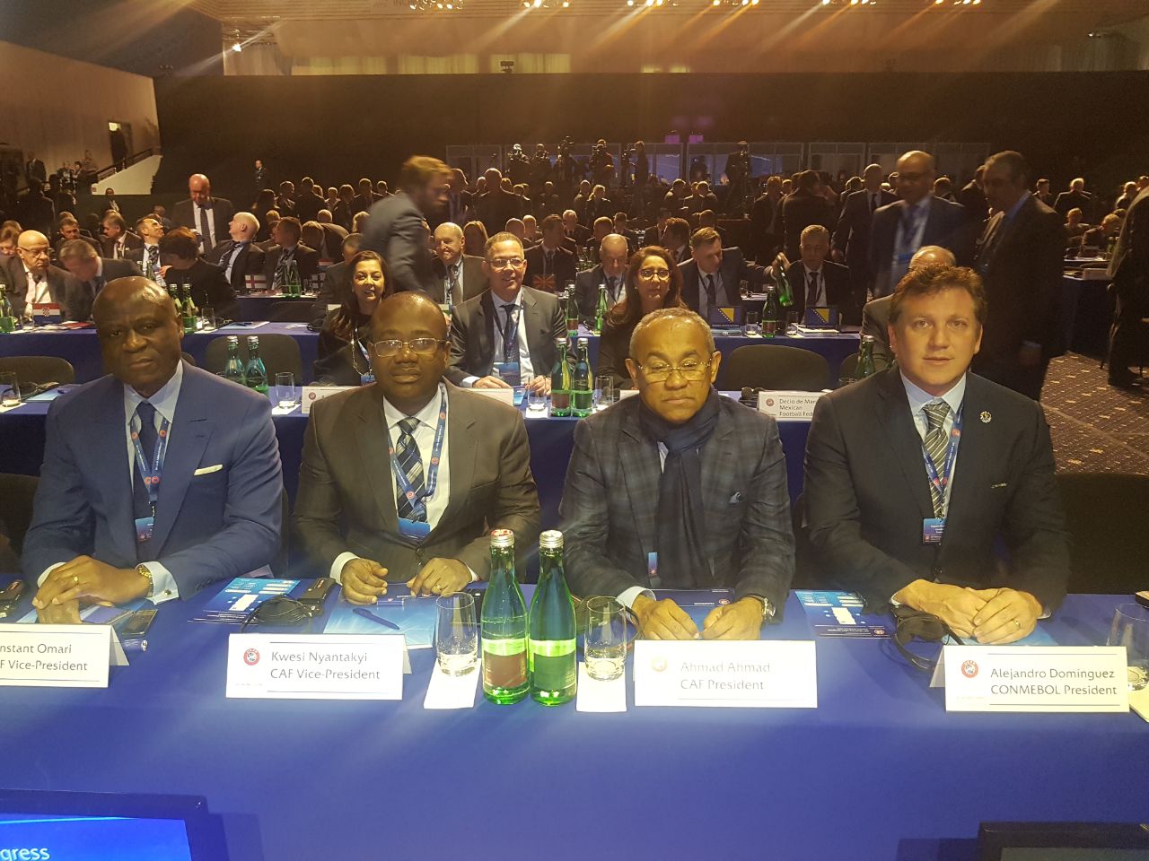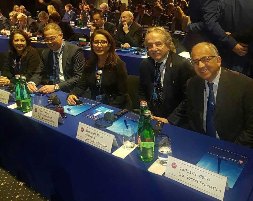 وظهر الوفد المغربي الى جانب رئيس الفيفا، وكل من رؤساء الاتحادات الإمريكية و المكسيكية والكندية لكرة القدم بالمؤتمر المنعقد بمدينة براتيسلافا في سلوفاكيا.