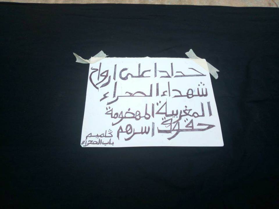 ورُفعت لافتات نفس اليوم، بجانب الأعلام السوداء تطالب المسؤولين المغاربة، بالإلتفات إلى مطالب أسر شهداء ومفقودي حرب الصحراء المغربية.