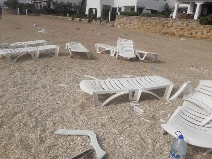 وتداولت صفحات فايسبوكية صورا من شاطىء "كابيلا"، حيث قامت السلطات بالتدخل بالقوة عبر حجز وتكسير الكراسي بعد احتلال الشاطىء من طرف أصحاب المظلات.