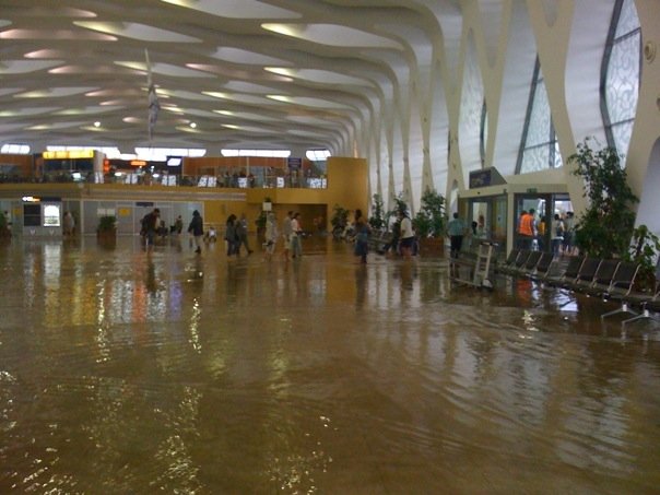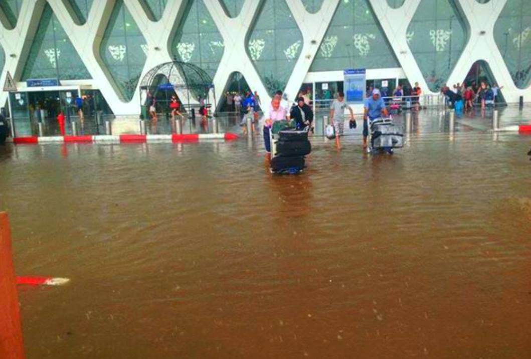 بالصور : مطار مراكش المنارة يتحول إلى شبه بركة عائمة بسبب أمطار رعدية فجائية