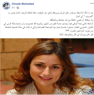 وتابع الممثل المغربي الذي يعتبر من المقربين للوافي "أساندك أختي نجاة الوافي فيما وضعوه خسة القوم من تشهير وتشويه لك خصوصا، وأن ضبط حالة الزنى في القانون المغربي تتطلب مسطرة خاصة تعمل بها الضابطة القضائية والتي لم تثبت في حالة الضبط المفتعلة من طرف المداهمين للمنزل".