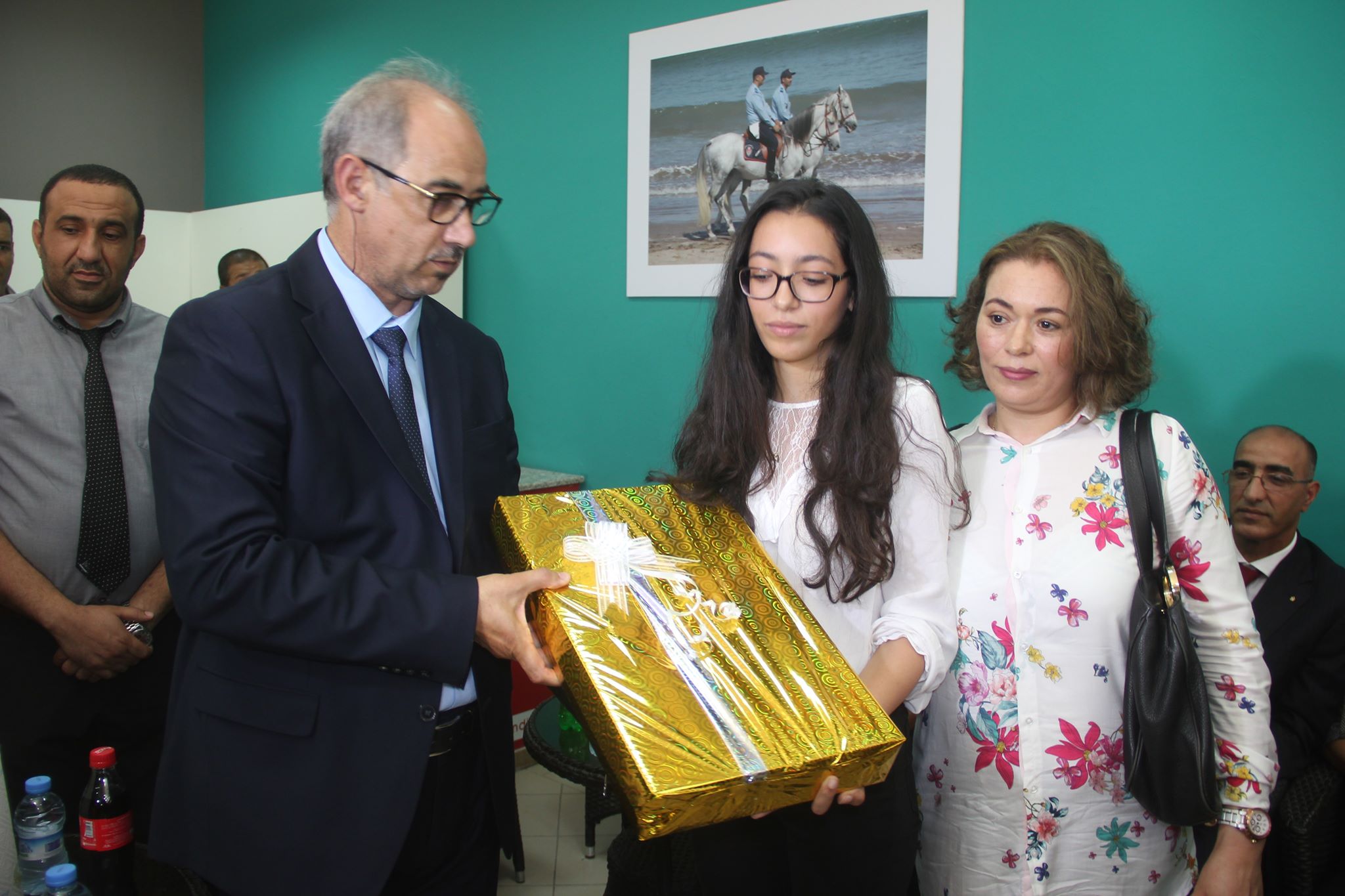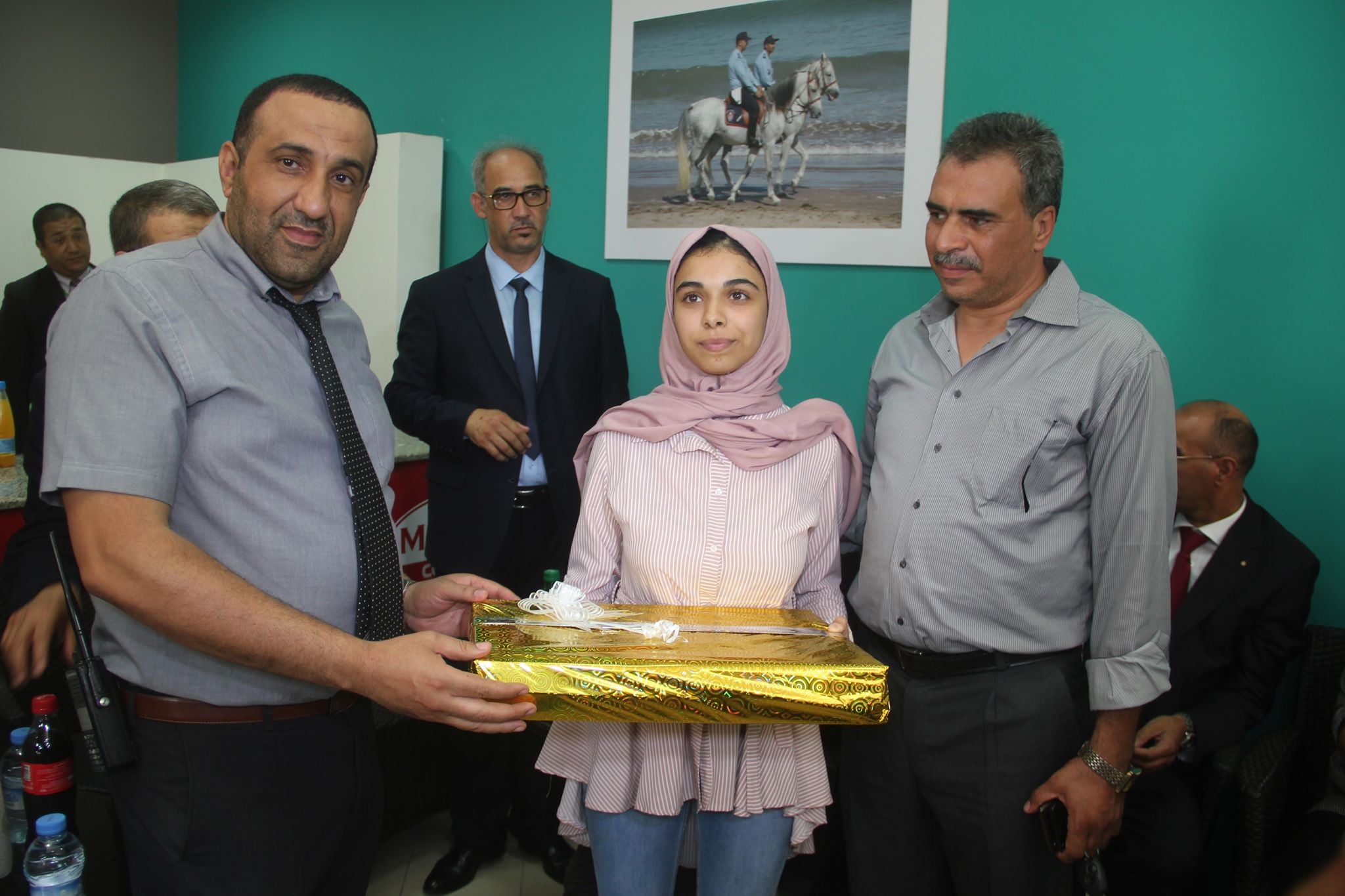 وقد شهد الحفل تسليم هدايا للمتفوقين الخمسة المحتفى بهم مقدمة من قبل مؤسسة محمد السادس للأعمال الاجتماعية لفائدة موظفي الأمن الوطني.