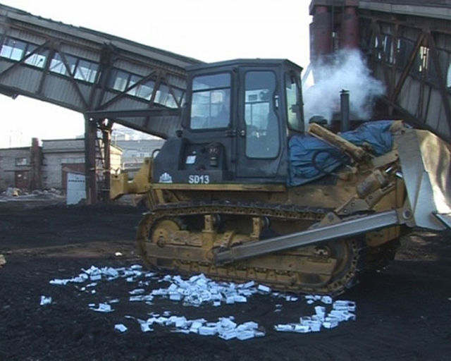 من الواضح أن الجمارك الروسية تتعامل بطريقة قاسية للغاية في ما بتعلق بالتهريب, فعندما تم الكشف عن مئات أجهزة الآيفون الصينية المقلدة والتي يصل سعرها إلى 40 ألف دولار أمريكي قامت بدهسها جميعا بواسطة بولدوزر لتدميرها وتم نشر الصور ومقطع الفيديو لعملية الإتلاف فيما بعد.. ومن الجدير ذكره أن هذه ليست المرة الأولى التي تتعامل فبها الجمارك الروسية بهذه القسوة مع المهربات..