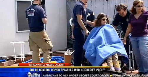 وجدت سيدة تبلغ من العمر 67 عام من كليرمونت، كاليفورنيا نفسها في موقف لا تحسد عليه وغير متوقع عندما كانت تقود سيارتها فانتهى بها الأمر في حمام سباحة.