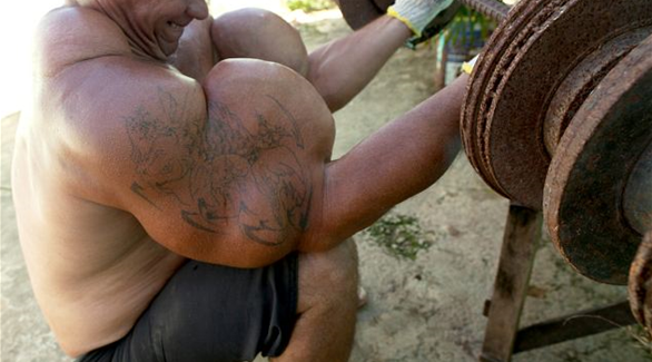 ويعتبر أرليندو دي سوزا (43 عاماً) أحد أشهر اللاعبين في هذا المجال والمعرض لمخاطر صحية وخيمة جراء حقنه ذراعيه بهذه السموم ليبدو بهذه الهيئة، والتي تؤدي في كثير من الأحيان لبعض اللاعبين إلى بتر أذرعهم وآخرين يموتون إثر ذلك.