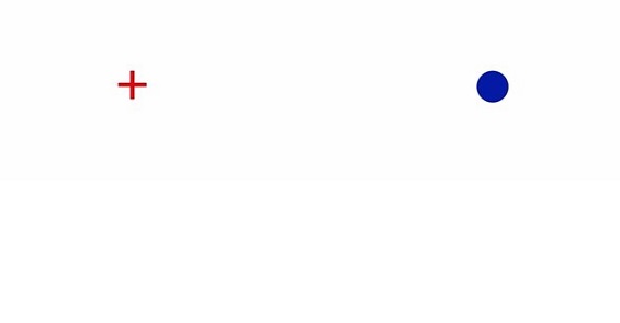 انظر إلى الصليب الأحمر على اليسار بعينك اليمنى مع إغلاق العين اليسرى، قرب رأسك ببطء إلى الصورة، ثم أبعده، وبعد فترة ستختفي النقطة زرقاء على اليمين، وبالتالي هذه هي النقطة العمياء الخاصة بك!
