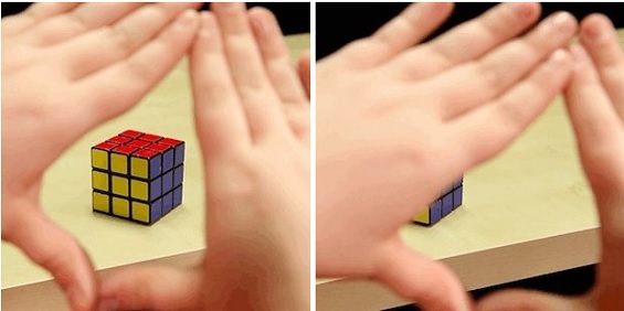 أغلق عيناً واحدة ثم الأخرى، ستظهر "العين المهيمنة" على يسارك، وسترى من العين غير المهيمنة الصورة على اليمين.
