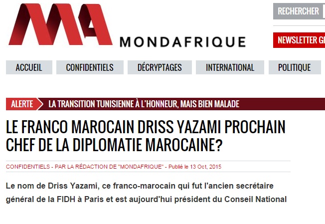 و أشارت صحيفة "موند أفريك" الفرنسية أن فؤاد عالي الهمة الذي كان يشرف شخصيا على سير عمل "هيئة الانصاف والمصالحة" الى جانب يساريي القصر بينهم اليزمي، بنزكري، العماري و الصبار، يدعم بشكل قوي اليزمي لخلافة مزواز على رأس وزارة الخارجية.
