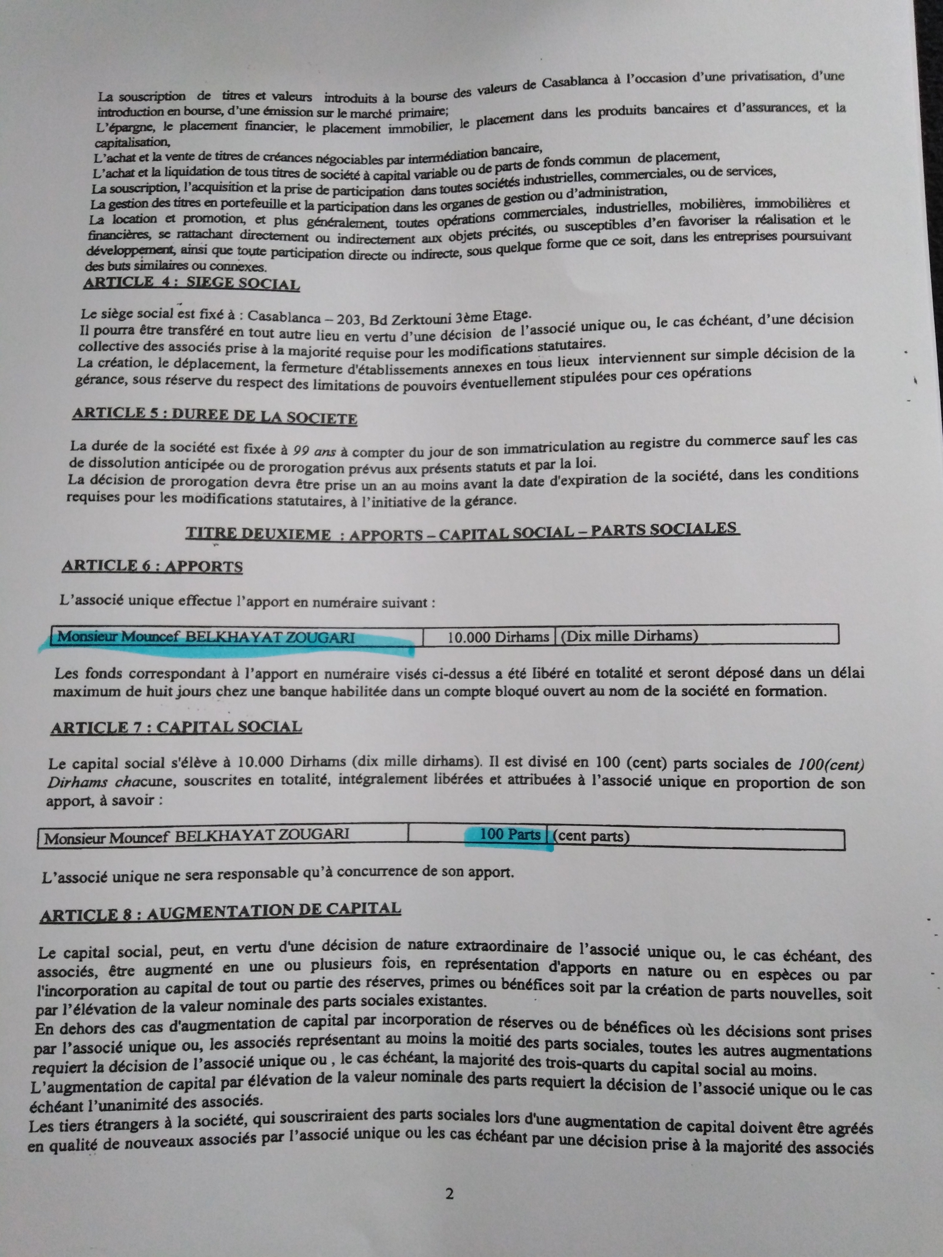 وما يثير الشبهات حسب الوثائق المتوفرة، ففي نفس السنة التي فوت الوزير السابق تدبير الشركة المذكورة إلى الشركة العالمية أي سنة ،2010 أقدم فيها(بلخياط) على تأسيس شركة خاصة به تحت إسم "HASOFA HOLDING"، حيث يمتلك كل أسهمها (حسب ما يظهر من الوثائق).