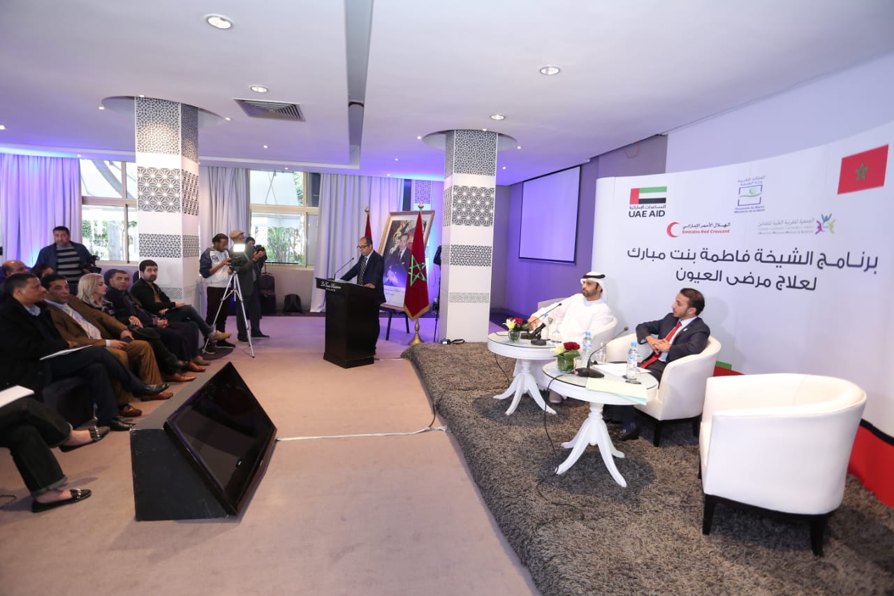 نظم برنامج سمو الشيخة فاطمة بنت مبارك حفظها الله لعلاج مرضى العيون بشراكة وتعاون مع سفارة دولة الامارات العربية المتحدة بالرباط والجمعية المغربية الطبية للتضامن مؤتمراً صحفياً مساء اليوم بفندق صومعة حسان بالرباط.