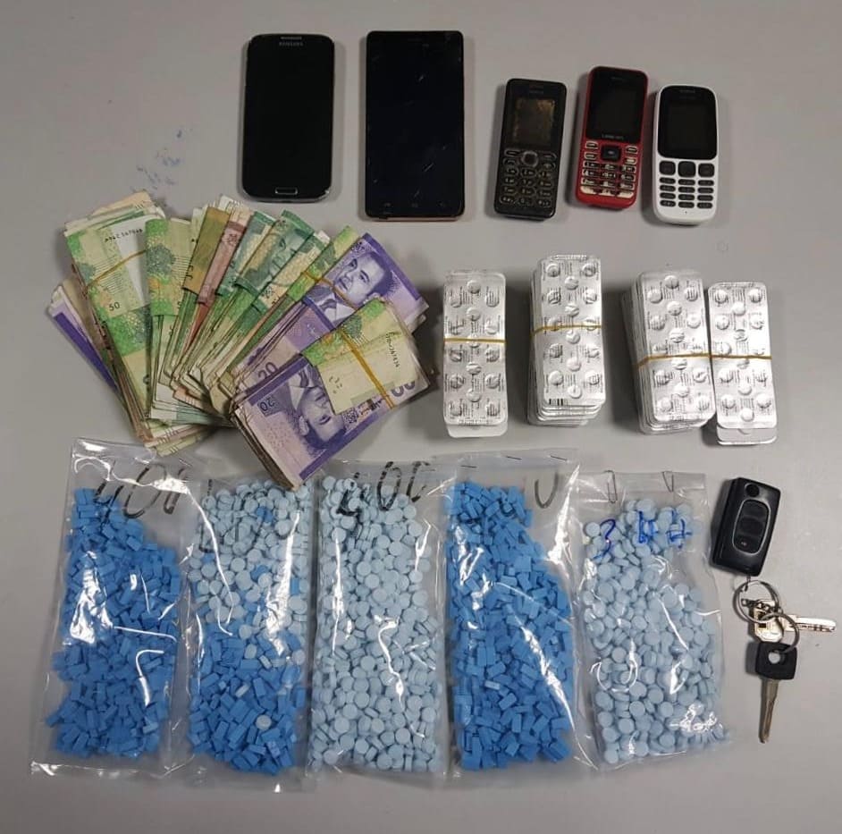 وأوضح بلاغ للمديرية العامة للأمن الوطني أنه جرى توقيف المشتبه فيهما على مستوى نقطة المراقبة المرورية بمدينة فاس أثناء وصولهما على متن سيارة قادمة من إحدى مدن شمال المملكة، حيث أسفرت إجراءات التفتيش عن العثور بحوزتهما على 2960 قرصا مهلوسا، من بينها 1940 قرصا من مخدر الإكستازي و1020 قرصا طبيا من نوع ريفوتريل وخمسة هواتف محمولة، علاوة على مبلغ مالي مهم يشتبه في كونه من عائدات الاتجار في المخدرات.