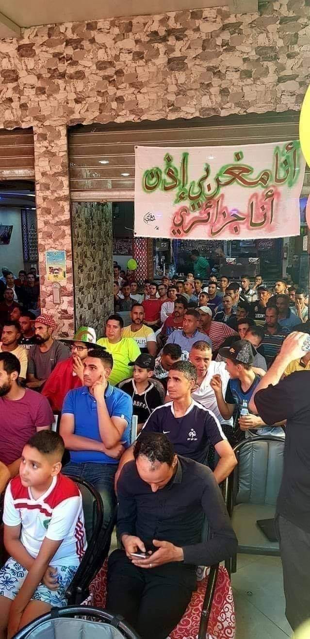 الشاب خالد وزوجته يرفعان الرايتين المغربية والجزائرية بمدرجات ملعب مولاي الحسن ...