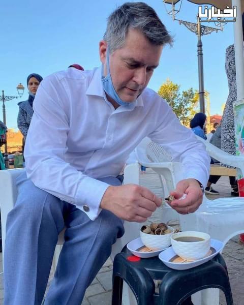 القائم بأعمال السفارة الأمريكية بالمغرب يتناول طبق الحلزون  في بني ملال
