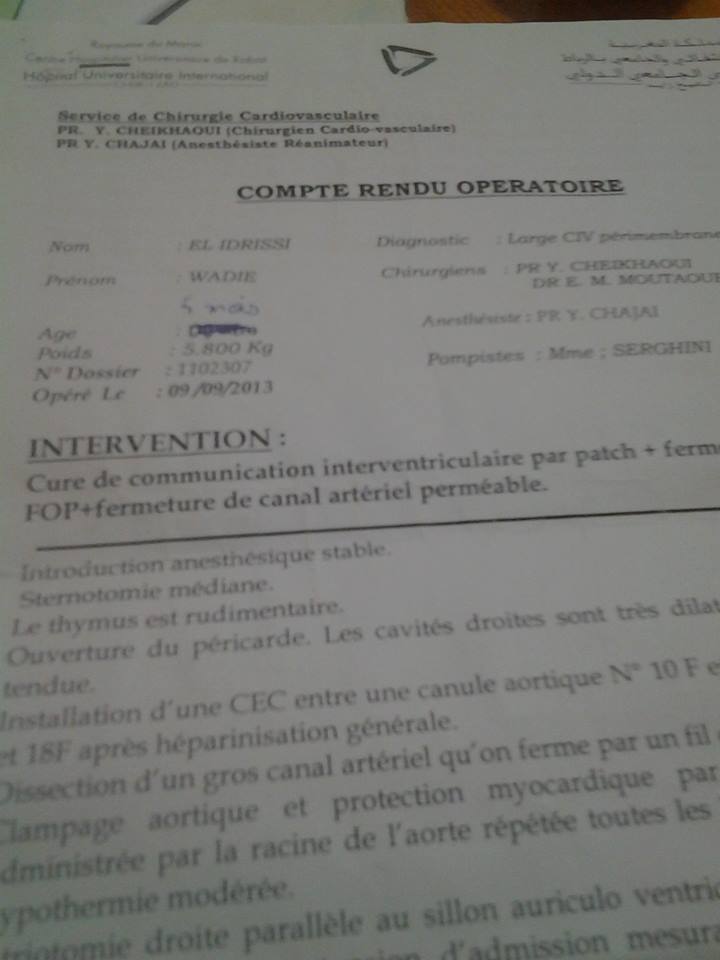 انا ارملة لدي رضيع من ذوي التثلث الصبغي .ليس لدي احد الا الله تعالی .اجريت لابني عملية للقلب بالرباط .السيد حسين الوردي وزير الصحة هو الذي تبرع بمصاريف العملية .جزاه الله