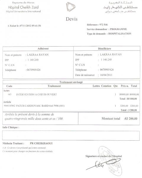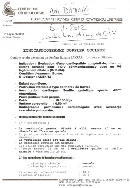 مستوى القلب هدا مااكده الاطباء بتاريخ 07-11-2012 بمدينة الرباط ومنذ ذلك