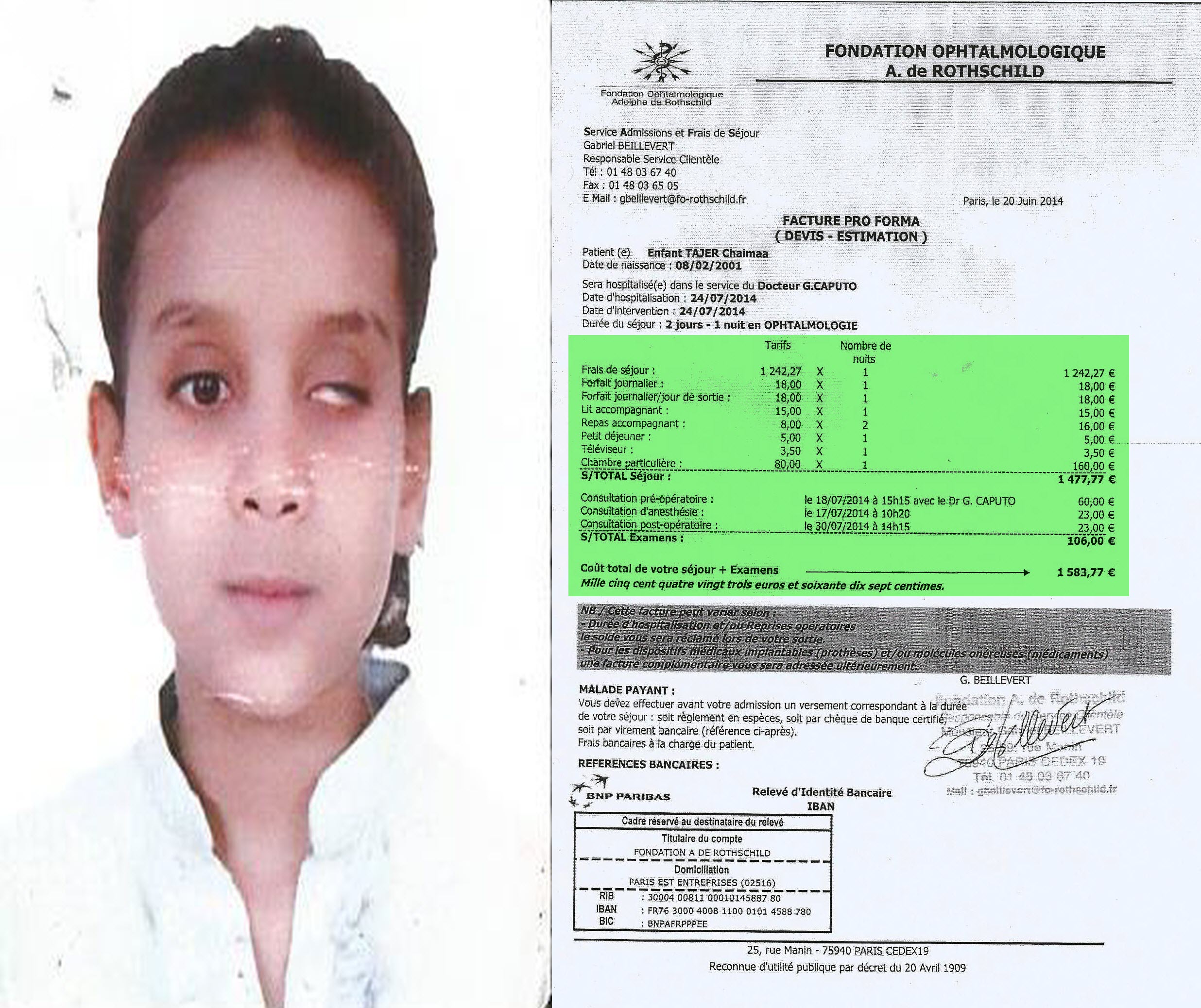 توصلنا بنداء انساني من اب الطفلة شيماء تاجر من اجل المساعدة في انقاذ طفلته البالغة من العمر 13سنة التي تتابع علاجها على مستوى عينيها اليمنى والتي تم ارسالها لمتابعة العلاج واجراء العملية بالديار الفرنسية ، نظرا لخطورة المرض الذي تعاني منه وحاليا مطلوب منها الحضور الى فرنسا لإجراء عملية جراحية فورية مكلفة في حدود ثلاثة ملايين سنتيم واما وضعيته الاجتماعية الهشة والضعيفة ولايجد المصاريف لعلاجها ويطلب من المحسنين التكافل بحالة ابنته