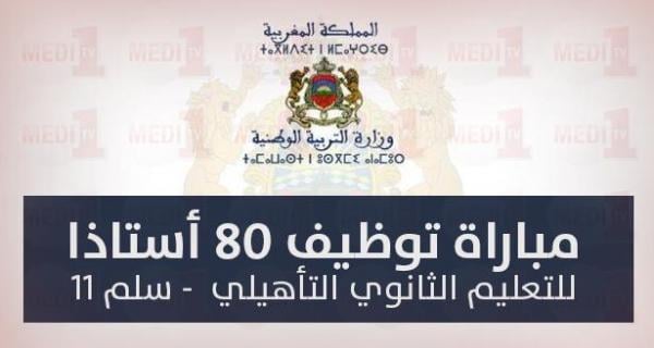 قامت وزارة التربية الوطنية والتكوين المهني، يوم الإثنين 12 أكتوبر، بإعلان فتح مباراة توظيف 80 أستاذا للتعليم الثانوي التأهيلي من الدرجة الأولى سلم 11.