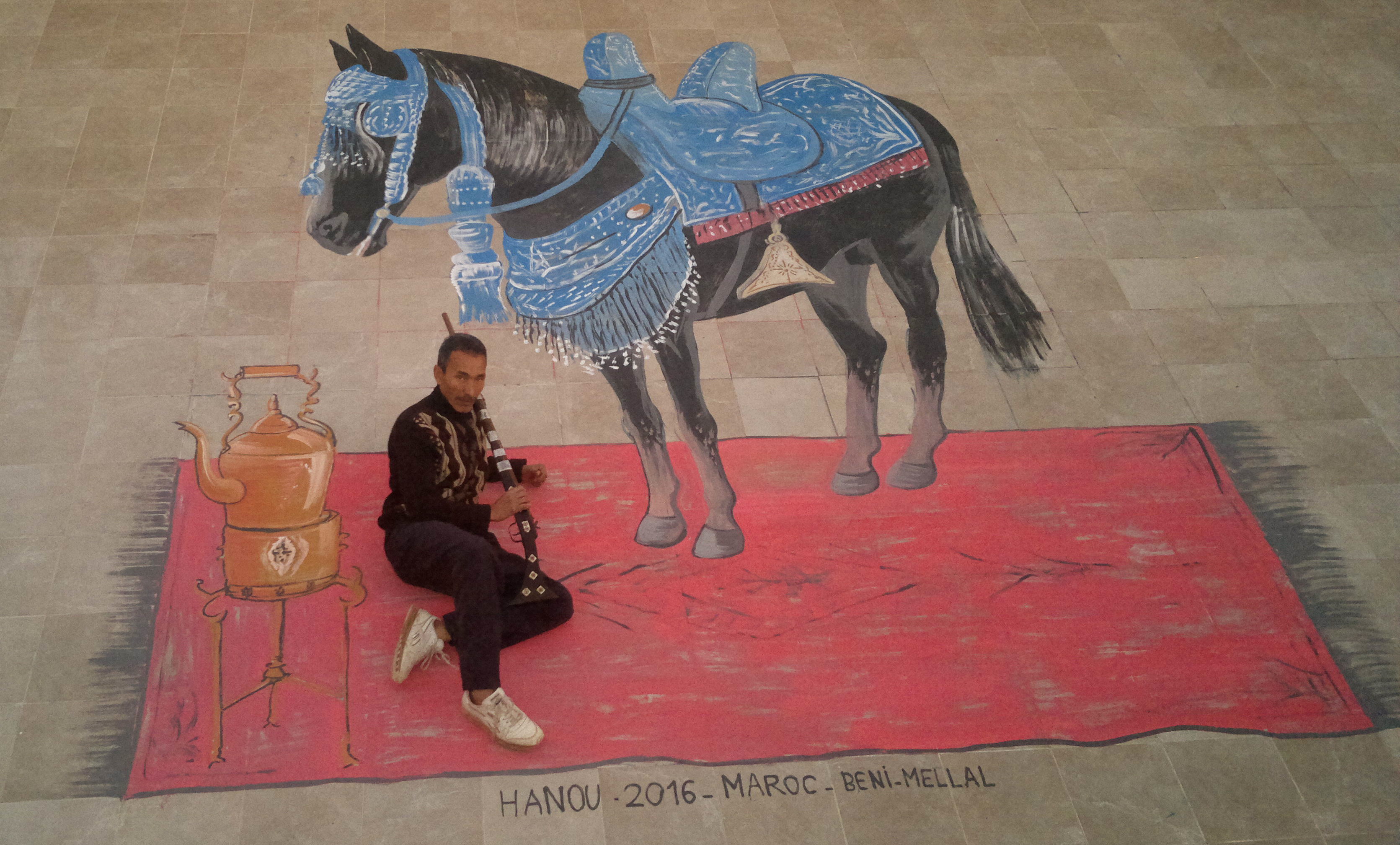 عبد العزيز هنو الفنان الذي أصبح يضرب موعدا كل أسبوع لعشاق فنه المتميز ، ويمتعهم بلوحات راقية تساير موضوع الساعة والأحداث الجارية ،كلوحة الفرس لفن التبوريدة التي تزامنت مع مواسم الخيل بمجموعة من