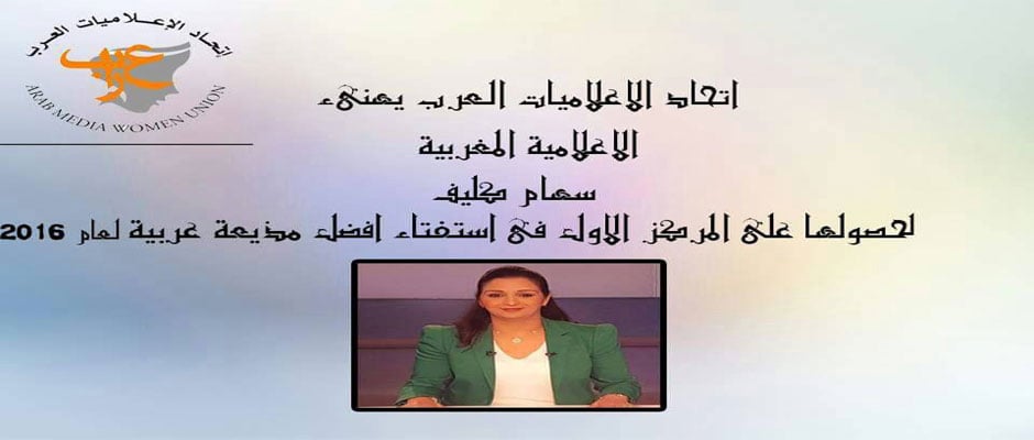 تشرف الجسم الصحفي المغربي بفوز الزميلة سهام كليف مقدمة ومعدة برنامج "الشوط الثالث" بالقناة الرياضية، وعضو اللجنة النسوية للجمعية المغربية للصحافة الرياضية، بلقب أحسن مذيعة عربية لسنة 2016، والتي نظمها اتحاد الإعلاميات العرب.