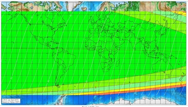 وكما تظهر الخرائط، سيكون القمر يوم الجمعة مرئيًا بالعين المجردة في معظم أنحاء شمال إفريقيا والشرق الأوسط وأوروبا، حيث سيبدأ شهر رمضان يوم السبت 25 أبريل 2020.