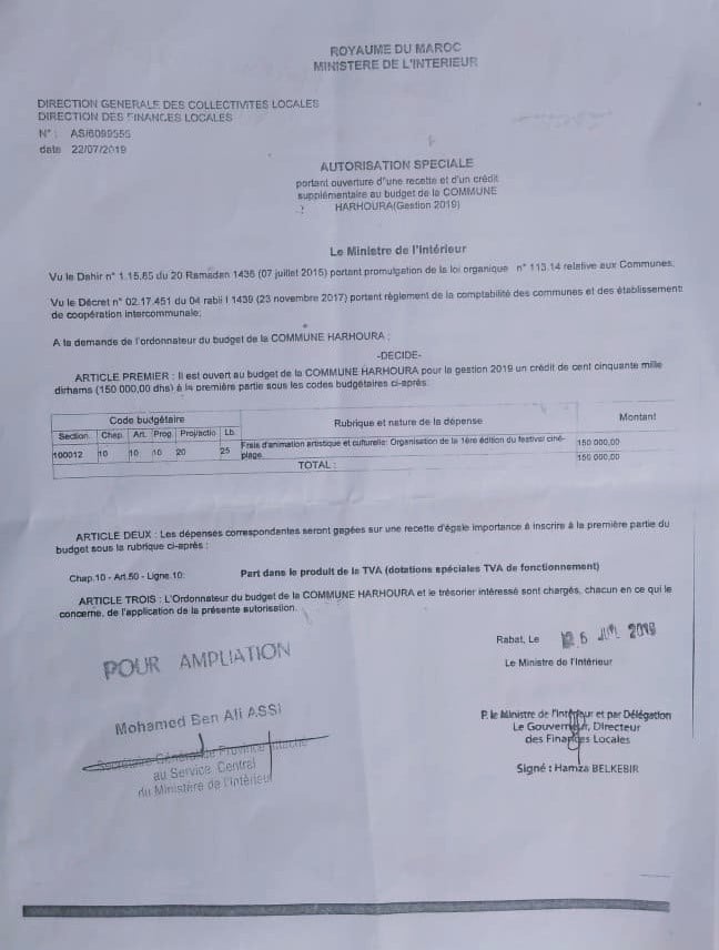 وبحسب مصادرنا المطلعة، أكدت أن وزارة الداخلية، وفي إطار مساعيها الدائمة لدعم الأنشطة الإشعاعية، وضعت رهن إشارة جماعة الهرهورة مبلغ 15 مليون سنتيم، في أفق تحويلها إلى حساب الجمعية المذكورة، عبر اتفاقية تعاون وشراكة، تروم دعم مهرجانها الدولي، الذي استطاع حلال نسخه السابقة، تحقيق إشعاع وطني ودولي كبير، باستقطابه فنانين كبار على الصعيد العربي والدولي، علاوة على التغطية الإعلامية الوطنية والدولية الكبيرة التي تسلط الأضواء على هذا المهرجان الذي يقدم خدمة كبيرة للسياحة المحلية والوطنية، غير أن المجلس رفض المصادقة المصادقة على هذه النقطة، بعد أن صوت 9 مستشارين من أصل 17 ضد هذا القرار.