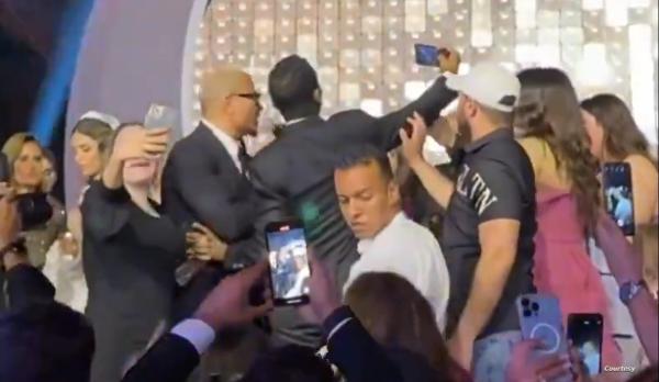 ويظهر الشاب في الفيديو وهو يحاول التقاط صورة "سيلفي" مع دياب، قبل أن ينفعل الأخير ويصفعه بشكل مفاجئ على وجهه أمام الحضور، قبل أن يتدخل الأمن ويبعد الشاب.