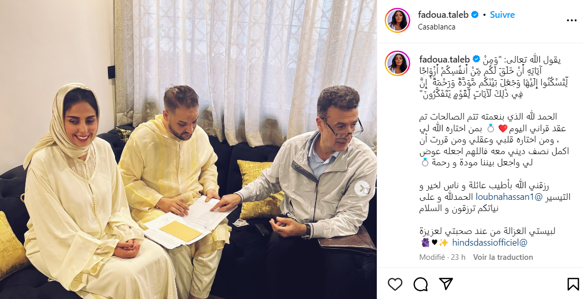 أعلنت الفنانة المغربية فدوى طالب خبر عقد قرانها مساء الجمعة 15 نونبر 2024، عبر حسابها الشخصي على منصة "إنستغرام"، حيث شاركت متابعيها صورًا توثق هذه اللحظات المميزة.