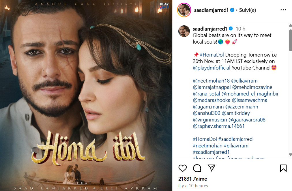 أعلن الفنان المغربي سعد لمجرد عن إطلاق أغنيته الجديدة "هوما دول"، وهي تعاون فني يمزج بين الموسيقى المغربية والهندية، بمشاركة المغنية الهندية الشهيرة نيتي موهان.