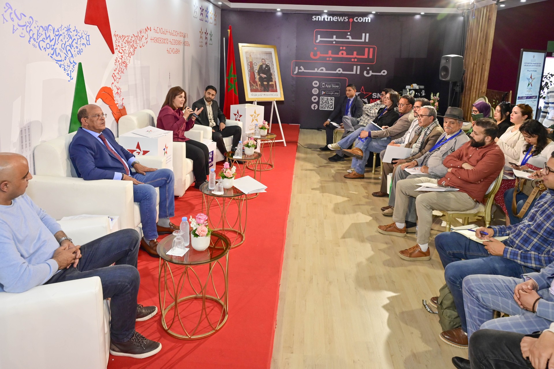 من جانبها سلطت السيدة نادية احسيسو، الصحافية ومعدة البرامج بقناة "تمازيغت" الضوء على عملها الوثائقي المتوج بالجائزة الوطنية الكبرى للصحافة برسم سنة 2024، والموسوم بـ " أمغار نايت أويرا"، مبرزة المقاربة التحريرية التي تعتمدها قناة "تمازيغت" في تناول المواضيع ذات الجذور المحلية، وتحويل تفاصيلها إلى رافعات معرفية وإعلامية، تستحضر الأنظمة التقليدية وتعيد قراءتها في سياقاتها الثقافية والاجتماعية المعاصرة، بما يساهم في حفظ التراث اللامادي وتداوله داخل الفضاء العمومي.