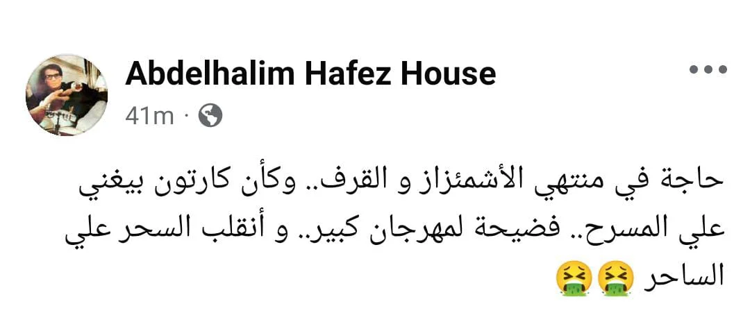 ونشرت الأسرة تدوينة عبر الصفحة الرسمية للعندليب على فيسبوك، وصفت فيها العرض بأنه "شيء في منتهى الاشمئزاز والقرف"، وأضافت: "كأن كارتون بيغني على المسرح.. فضيحة لمهرجان كبير.. وانقلب السحر على الساحر"، في إشارة إلى عدم رضاها عن الشكل الذي ظهر به عبد الحليم حافظ خلال الحفل.