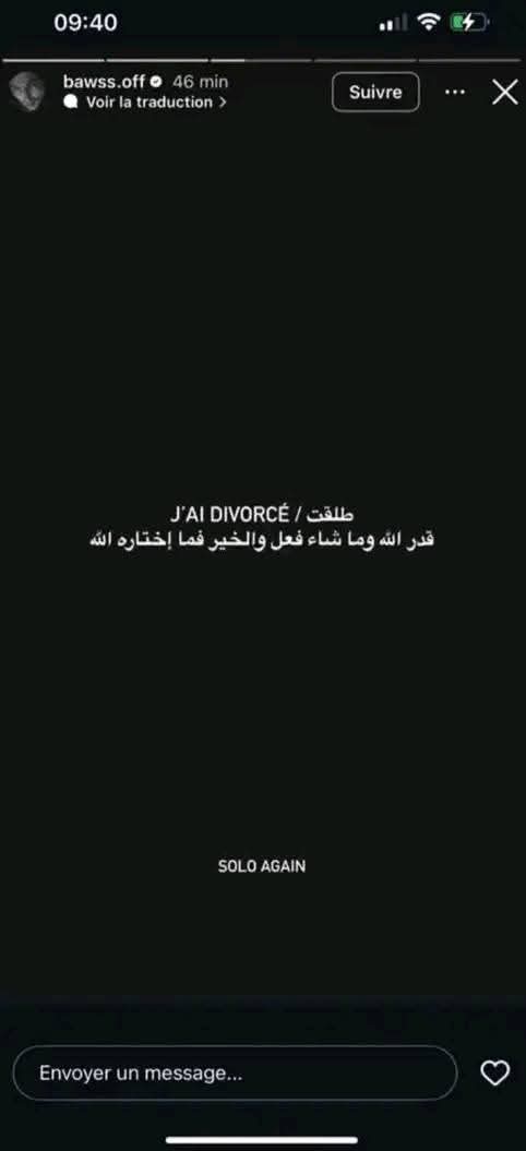 غير أن هذا الهدوء لم يدم طويلا، إذ فاجأ أنس بسبوسي جمهوره بخروجه في “ستوري” مقتضبة أعلن فيها بشكل صريح أنه مطلق، مؤكدا أن العلاقة الزوجية انتهت، دون الخوض في تفاصيل الأسباب أو توقيت الانفصال، الأمر الذي خلق حالة من الارتباك لدى المتابعين، خاصة في ظل الصور والمنشورات التي سبقت هذا التصريح بساعات فقط.