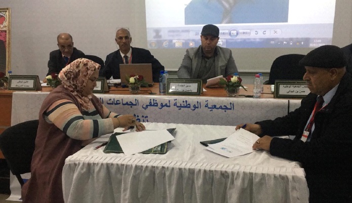 بعد تناول الكلمة السيد المقرر الوطني السيد محمد المرينوي حيث تلى التقرير الأدبي السنوي سنة 2018 والتي سمّاها سنة الانتشار من حيث عدد الفروع التي تم تأسيسها باسم الجمعية الوطنية لموظفي الجماعات الترابية.