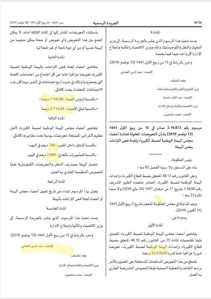 وطالت الانتقادات "التعويضات السخية" التي سيحصل عليها الأعضاء المعينون، حيث سيحصل كل واحد منهم على تعويض شهري قيمته 62.618 درهم، في حين تبلغ تعويضات أعضاء فض النزاعات بالهيئة الوطنية لضبط الكهرباء تعويضا عن كل اجتماع، حيث وحسب ما نشر بالجريدة الرسمية، فإن رئيس اللجنة يحصل على 7142 درهم عن كل اجتماع، في حين يحصل باقي الأعضاء فيحصل كل واحد منهم على 5714 درهم عن كل اجتماع، في حدود أربع اجتماعات في الشهر.