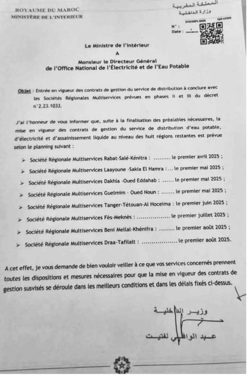 أعلنت وزارة الداخلية عن تواريخ انطلاق عمل الشركات الجهوية متعددة الخدمات، التي ستتولى إدارة قطاعات الماء والكهرباء والتطهير السائل في مختلف الجهات، في إطار خطوة تهدف إلى تحسين جودة هذه الخدمات. يأتي هذا الإجراء ضمن المرحلة الثانية والثالثة من المرسوم رقم 2.23.1033، الرامي إلى تعزيز التنمية الجهوية وتطوير الخدمات المحلية.