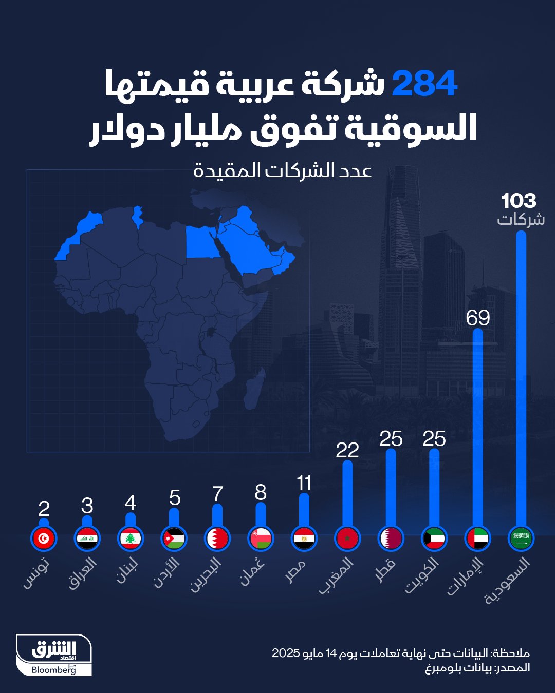 كشفت بيانات صادرة عن "بلومبيرغ" ونشرتها منصة الشرق للأعمال أن المغرب سجل حضوراً قوياً ضمن قائمة الدول العربية التي تضم شركات تفوق قيمتها السوقية مليار دولار، وذلك حتى نهاية تعاملات 14 ماي 2025، حيث احتل المرتبة الخامسة عربياً بـ22 شركة مدرجة، متقدماً على عدة دول ذات ثقل اقتصادي في المنطقة.