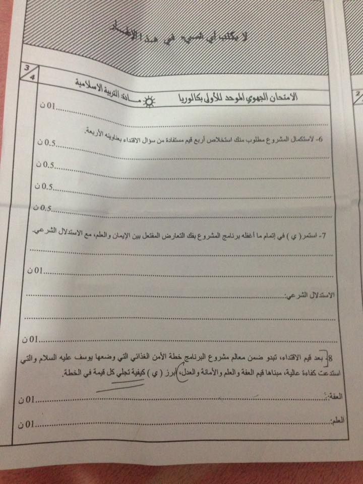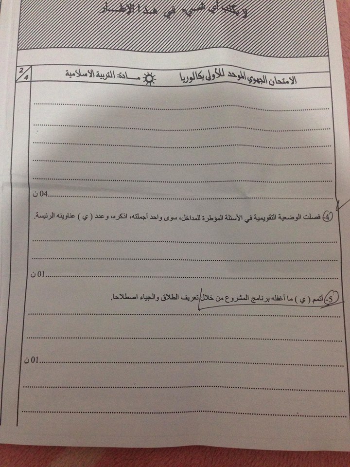 حالة من الاستياء و خيبة الأمل تصيب أساتذة مادة التربية الاسلامية بسلك الثانوي التأهيلي و تلاميذهم وآبائهم بمدن جهة طنجة تطوان الحسيمة هذه السنة بسبب صعوبة الامتحان الجهوي للمادة بالمقارنة مع جهات المملكة الأخرى حيث صرح عدد من التلاميذ المعنيين بالامتحان بصعوبته اما الاساتذة فمنهم من اعتبره أنه لم يحترم الإطار المرجعي للمادة الى حد كبير وطرحت فيه أسئلة فضفاضة وغامضة بالنسبة للتلميذ اربكته واعتبره اخرون في مواقع التواصل الاجتماعي بامتحان صعب يضيع مجهودات الاستاذ والتلميذ طيلة السنة الدراسية .