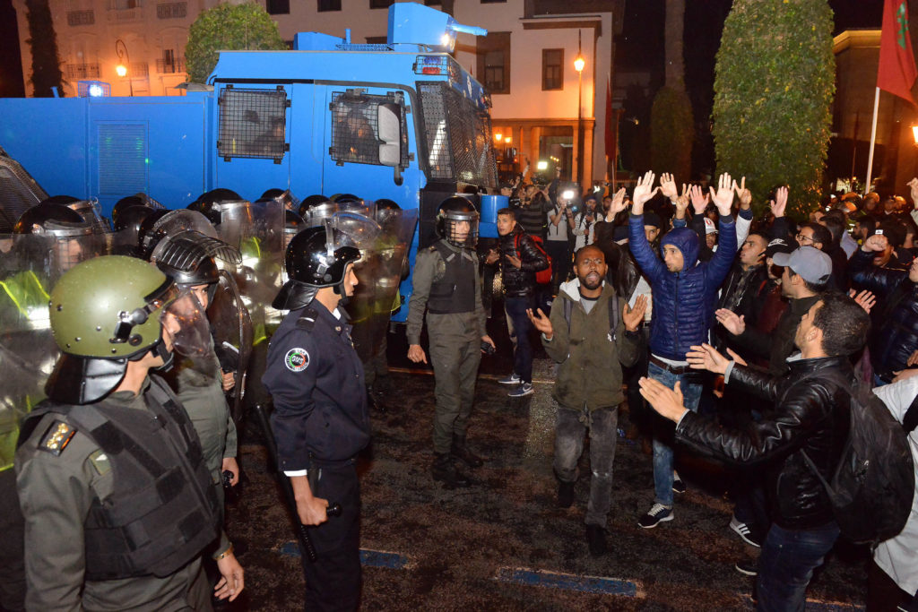 واستعمل الأمن الهراوات ورشاشات المياه لتفريق الأساتذة المحتجين، بعد فشل محاولات إقناعهم بانهاء هذا الإعتصام، الذي امتد منذ العاشرة ليلا الى غاية الثالثة صباحا.