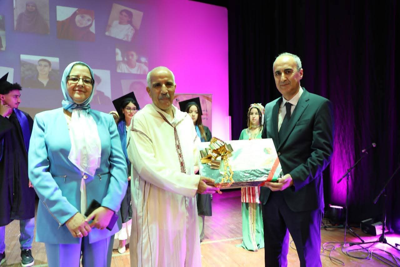 وتوج الحفل بتوزيع الجوائز والشهادات التقديرية على التلاميذ المتفوقين في مختلف الشعب والمسالك، بما في ذلك تلميذات وتلاميذ التربية الدامجة وغير النظامية، في مشهد طغت عليه مشاعر الفخر والفرح، كما شهد الحفل تكريم عدد من الأطر التربوية والإدارية المحالة على التقاعد، وعلى رأسهم الأمين بخاث، مدير الثانوية التأهيلية ابن رشد، وسعيد الهلال، إطار بالمديرية الإقليمية، اعترافا بما بذلوه من عطاء طيلة مسيرتهم المهنية.