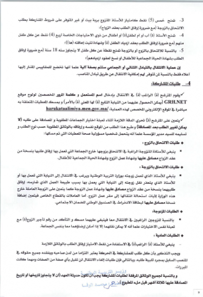 * مسك طلبات الانتقال الخاصة بهيئة التدريس عبر البوابة الإلكترونية harakataalimiya.men.gov.ma؛