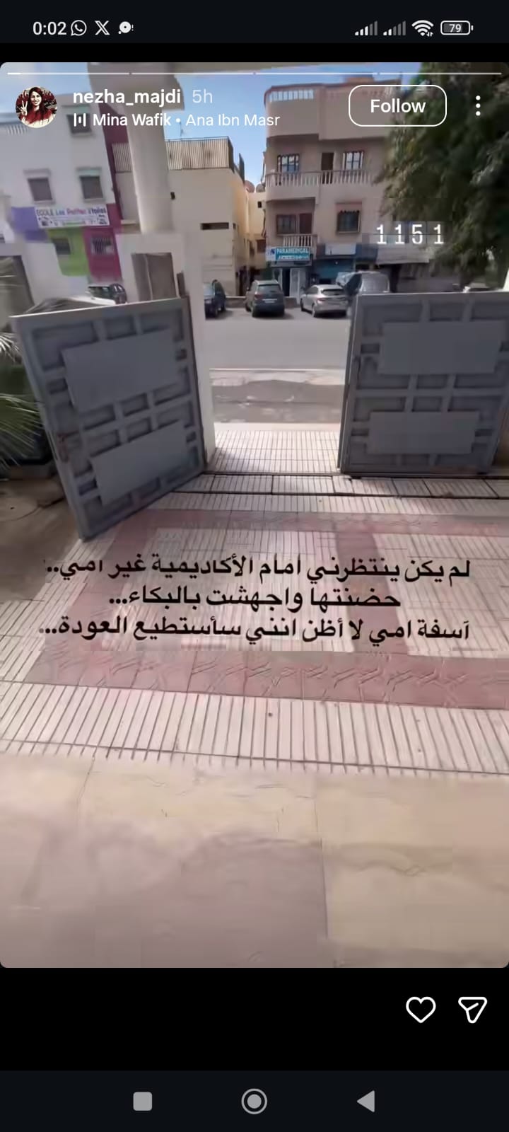 وقالت مجدي في أول "استوري" والتي أرفقتها بصورة تظهر باب الأكاديمية من الداخل ما يوحي بأنها التقطت أثناء خروجها بعد العرض على المجلس التأديبي: "لم يكن ينتظرني أمام الأكاديمية غير أمي.. حضنتها واجهشت بالبكاء... آسفة أمي لا أظن أنني سأستطيع العودة...".