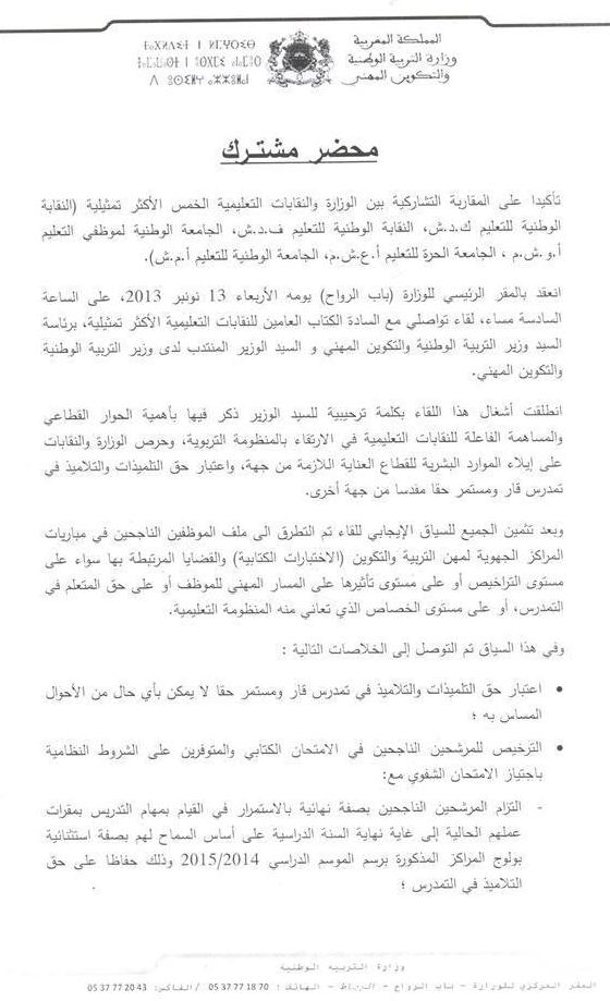 النقابات الأكثر تمثيلية تمكنت من الوصول إلى هذا الاتفاق بعد اجتماعها مساء اليوم بوزير التربية الوطنية رشيد بلمختار، إلا أن هذا الترخيص صاحبته بعض الشروط.
