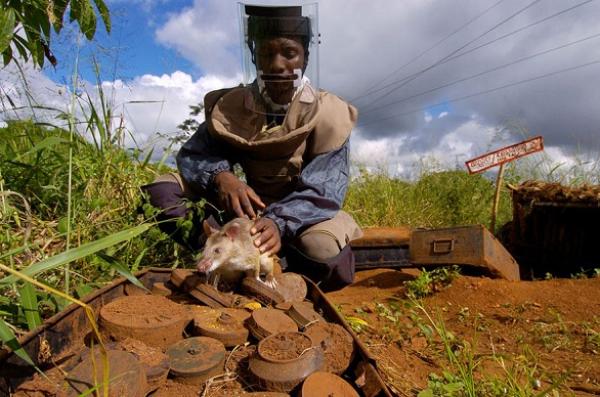 ويتم تدريب الجرذان الأفريقية الضخمة، والتي يعرف عنها قدرتها على بحث 200 متر مربع في أقل من 20 دقيقة، والتي يحتاج الإنسان لنحو 25 ساعة من العمل لتغطية المساحة نفسها والكشف عن الألغام والأخطار المشابهة، كما تستطيع الجرذان المرور بسلام على الألغام، كونها لا تتجاوز وزن الكيلوغرام ونصف، بينما ينفجر اللغم في حال بلغ الوزن 5 كيلو غرامات فأكثر.