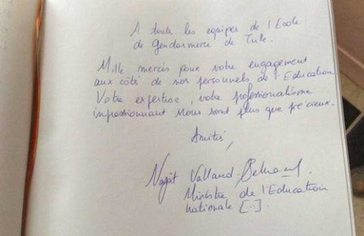 في زيارة رسمية لها إلى مدرسة الدرك تيل في مدينة كوريز الفرنسية، يوم الجمعة الماضي، لم تكن وزيرة التربية الوطنية والتعليم العالي والبحث العلمي الفرنسية، نجاة فالو بلقاسم (من أصل مغربي)، محظوظة، فقد تركت خلفها خطأ لغويا، حين دعيت كالعادة، إلى التوقيع في الدفتر الذهبي لهذه المؤسسة، فقد كتبت الوزيرة في السّجل الذّهبي كلمة professionalisme» والصواب هو professionnalisme حسب ما أوردته عدة مواقع إخبارية فرنسية.