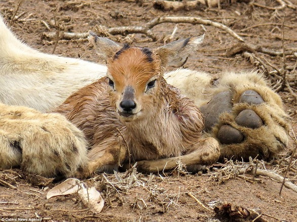 ويظهر الأسد في الصور التي التقطها ميتشلي، وهو يلعق جسد صغير الغزال، ويحنو عليه بطريقة لا تصدق، في الوقت الذي كان من الممكن أن يتحول الصغير إلى وجبة دسمة للأسد المفترس، بحسب صحيفة ديلي ميل البريطانية.