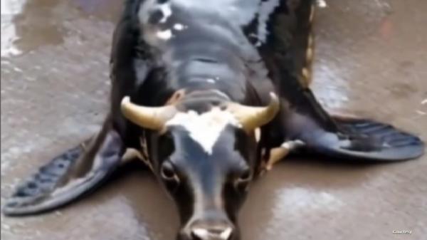 تحت عنوان "العثور على بقرة برمائية"، انتشر منذ أسبوع مقطع فيديو يوثق لحظات العثور على فقمة برأس بقرة على شاطئ البحر.