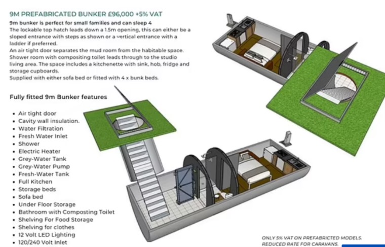 تشير التقارير إلى أن شركات متخصصة مثل Burrowed وSubterranean Spaces UK تقدم الآن خيارات لبناء مخابئ حديثة بأسعار تصل إلى 143,000 جنيه إسترليني. توفر هذه المخابئ ميزات أمان حديثة، مثل أنظمة تهوية للحماية من الغبار النووي وأبواب مقاومة للانفجار، مما يجعلها خياراً آمناً للأفراد الذين يستطيعون تحمل تكاليفها.