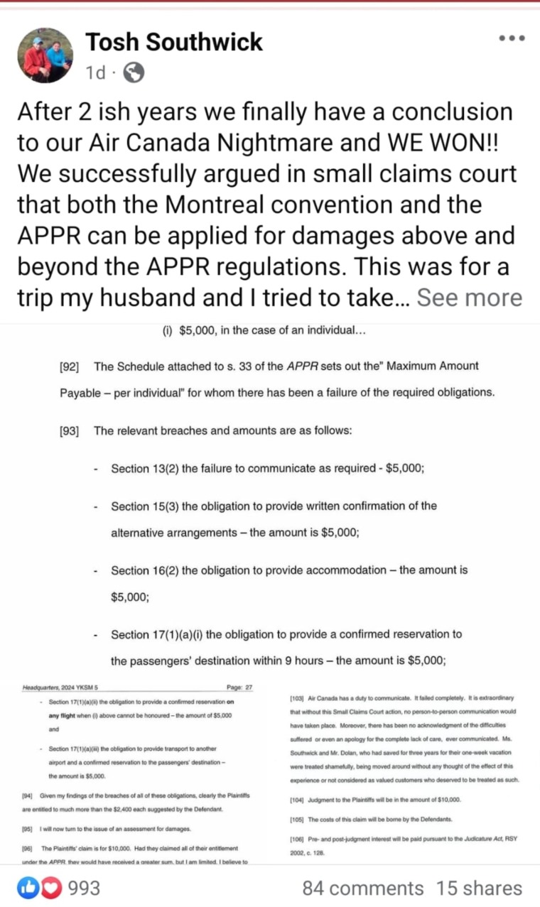 وصفت المحكمة التجربة التي مر بها الزوجان بـ"المروعة"، مشيرة إلى أن الشركة انتهكت لوائح حماية حقوق الركاب (APPR) التي تلزم شركات الطيران بتوفير بدائل مناسبة في حالات الإلغاء أو التأخير. وأكدت القاضية كاثرين ل. ماكلويد أن الزوجين عوملا بطريقة "مهينة"، مما دفع المحكمة إلى إنصافهما.