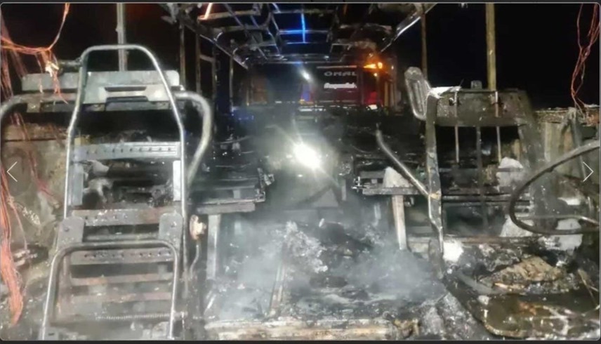 وأثناء سير الحافلة على طريق سريع، لاحظ السائق البالغ من العمر 41 عاماً تصاعد دخان كثيف من المحرك، مما دفعه إلى التوقف بسرعة وإنزال الركاب في منطقة آمنة قبل أن تشتعل النيران بالكامل في الحافلة، التي تحولت إلى كومة من الحديد.