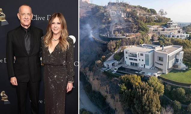 ظهر قصر النجم العالمي توم هانكس شبه سليم رغم قربه من مناطق الحرائق، حيث تبلغ قيمة القصر المطل على المنحدرات في منطقة باسيفيك باليسيدز 26 مليون دولار. القصر، الذي تبلغ مساحته 4513 قدماً مربعاً، بدا خالياً من أي حطام على سقفه أو في ساحته الخلفية، رغم تصاعد الدخان من منازل جيرانه المدمرة.