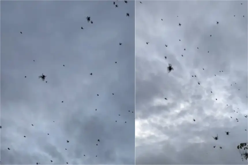 وقال أحد علماء الأحياء، كايرون باسوس، إن أسراب الحشرات كانت على متن شبكة ضخمة تشارك في طقوس تزاوج جماعي.